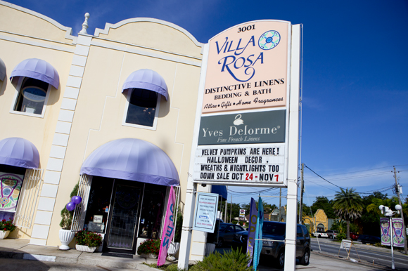 The road show trunk sales are memories but not Azorin’s Villa Rosa Distinctive Linens in the heart of the Palma Ceia Business District.
