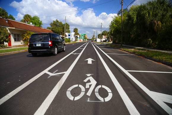 “Our streets and roadways need to serve all their users, including cyclists and pedestrians,” Tampa Mayor Bob Buckhorn says in a news release. “The new buffered, green bike lane is the first of its kind in Tampa. My hope is that the new cycling infrastructure can become a model for how we redesign our streets.”
