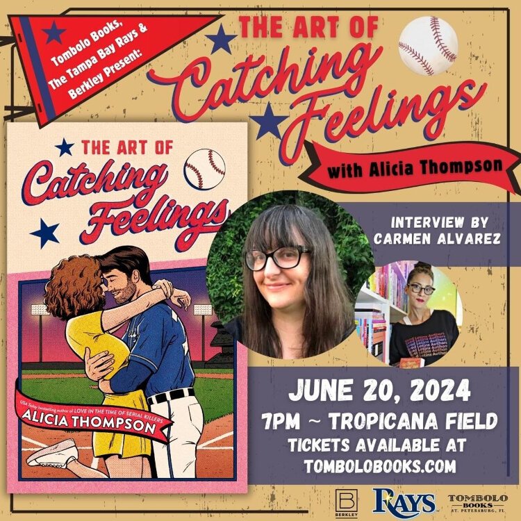 Kelsey Jagneaux, the events coordinator at Tombolo Book in St. Petersburg, says the June 20th book launch party is as much a celebration of Thompson as it is an introduction to “The Art of Catching Feelings,” which Penguin Random House just published. Tombolo Books is hosting the launch event in partnership with the Tampa Bay Rays and Berkley Publishing, an imprint of Penguin Random House. And where else to hold a book launch party about a baseball player than Tropicana Field?