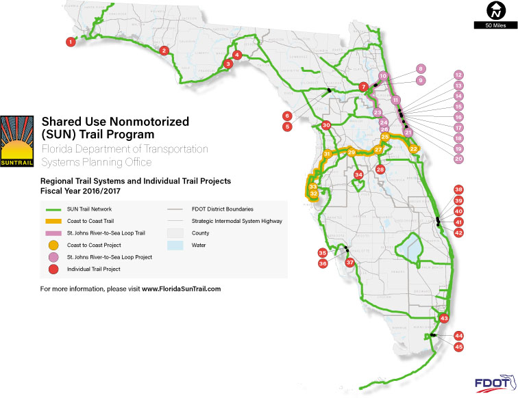 The money comes from the state’s Shared Use Nonmotorized or SUN Trail program, which was established in 2015 and is meant to help Floridians enjoy safe, recreational opportunities. The SUN Trail network consists of the developing statewide system of paved, multi-use trails for bicyclists and pedestrians, physically separated from vehicular traffic.