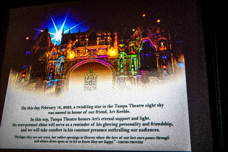 The festive celebration was capped off with the announcement that a twinkling star in the Tampa Theatre night sky was being named in honor of Art Keeble: