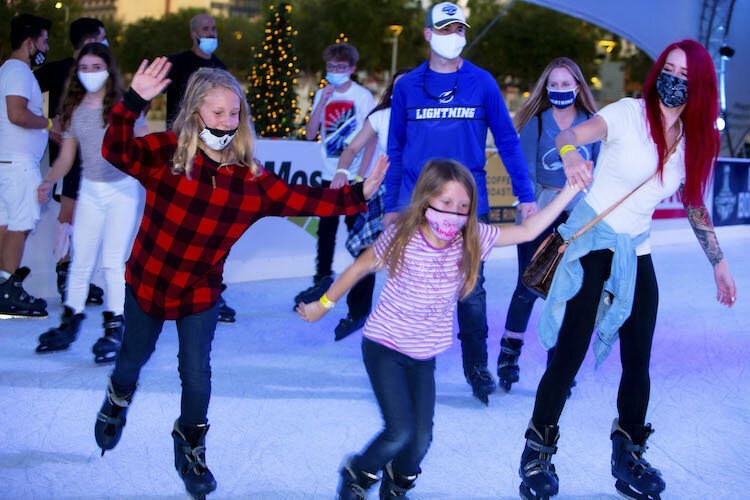 Cost: Iceskating is $15 per person, including skate rental; Winter Village Choo Choo, roundtrip ticket $10; children under 2 are free. A short ride on the Curtis Hixon Park Choo Choo is free. Seating is first-come, first-served, and masks are required.