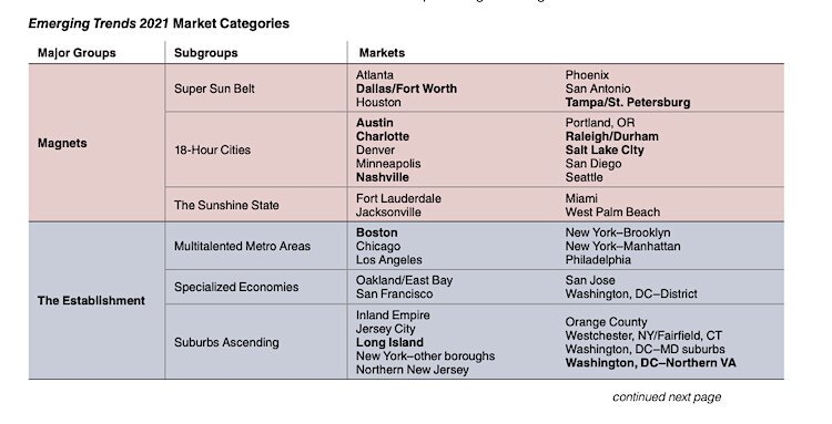 In the latest edition of Emerging Trends, forecasts and results by industry experts with ULI and PwC were culled from proprietary data and investigations by more than 1,600 real estate industry experts. Among the report’s findings are how COVID-19 has increased the desire by people to live and work in lower-density areas and budget-conscious companies have begun moving to business-friendly, lower-cost cities with big and growing workforces, according to ULI Tampa Bay.