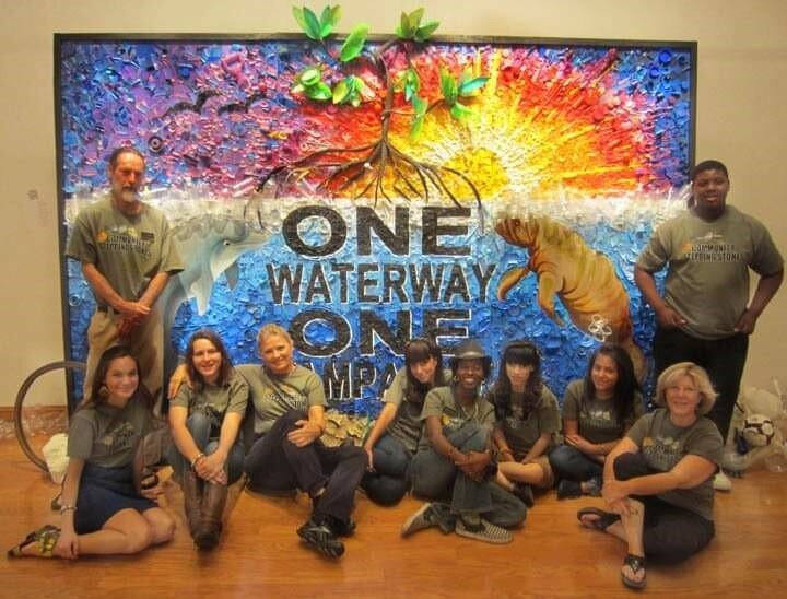 An environmental-themed mural by students from Tampa’s Sulphur Springs community is on display at Port Tampa Bay Cruise Terminal Six. Students in the Community Stepping Stones program made “One Waterway One Tampa Bay” from recyclable materials collected during beach clean-up events and community clean-ups in Sulphur Springs. The mural was initially created nine years ago, restored this year by students in a Community Stepping Stones art camp and hung on World Oceans Day.
