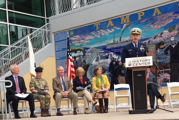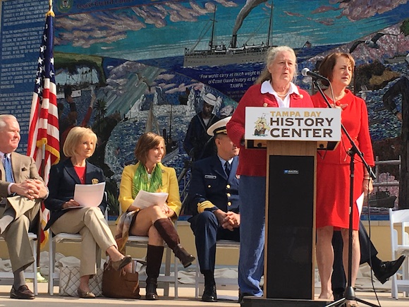 Military veterans and community dignitaries join local residents and history buffs on Saturday, Feb. 3, at the Tampa Bay History Center for the dedication of the USCGC/USS Tampa Memorial.