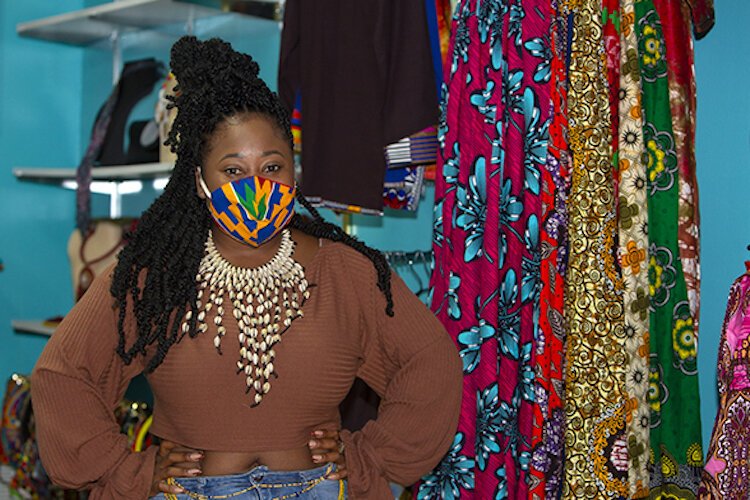 Photos by Kimberly DeFalco – Regina Johnson, proprietor of “Queens Vision African Apparel, welcomes visitors to her boutique on Busch Boulevard during a 2021 Black Business Bus Tour event. A tour is scheduled January 13 as part of the 2024 Tampa Bay Black Heritage Festival.