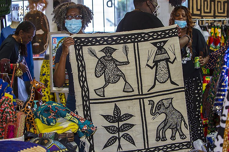 Photos by Kimberly DeFalco – Seventy-plus visitors embarked upon “Queens Vision African Apparel” on Candy Lowe’s Black Business Bus Tour Saturday.