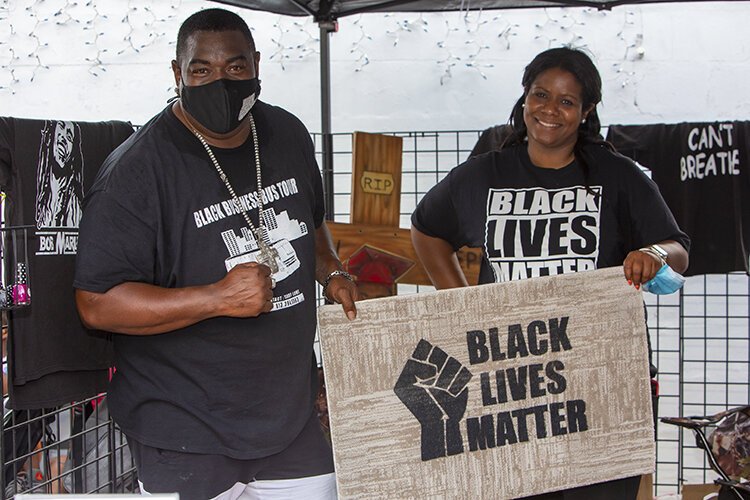 Photos by Kimberly DeFalco – Deanna Hardy-Joseph and Andrew Joseph participate in Saturday’s Black Business Tour community celebration at Big Al’s Finger Licking Good Soul Food.