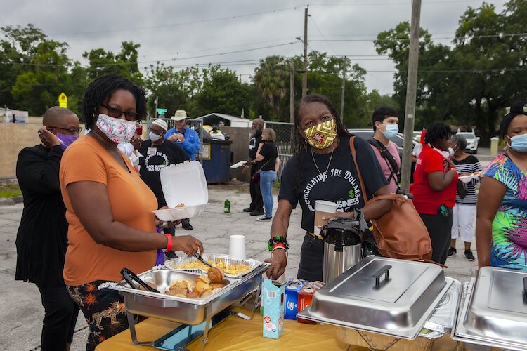 A post-bus tour event at Al’s Finger Licking Good Soul Food in Ybor City for about 70 participants included socially distanced vendors in the outdoor courtyard.