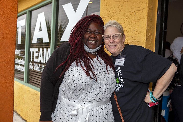 Photos by Kimberly DeFalco – Brandye Wilds, proprietor of “Tax Team Wilds Sisters,” greets longtime Black Business Bus Tour supporter Beth Shoup at her business on Dr. Martin Luther King Boulevard.