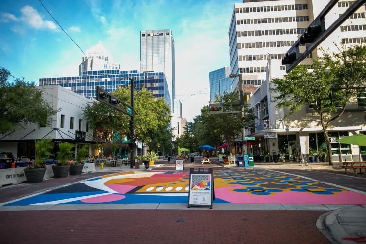 While working with community stakeholders on detailed strategies to improve and reenergize Franklin Street, the Downtown Partnership launched programming to generate activity and create a sense of place. The organization funded mural art installations, pop-up alleyway art shows in Tampa Heights and established a storefront improvement grant program for downtown that awarded $11,000 to Franklin Street businesses over one six-month period.
