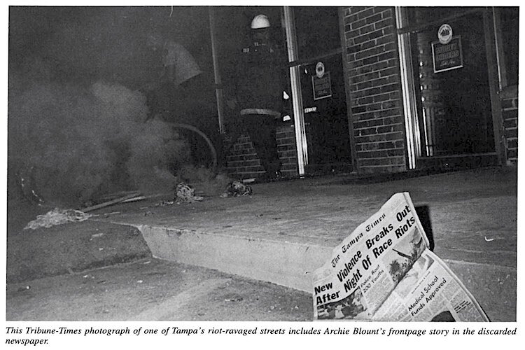 Courtesy of the Tampa Bay History Center – A discarded daily newspaper in the middle of riots in Tampa in 1967.