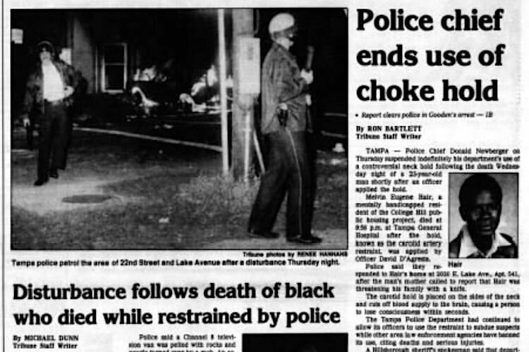 Courtesy of the Tampa Bay History Center – Tampa banned the use of chokeholds after the death of Melvin Hair in 1987 while in police custody.