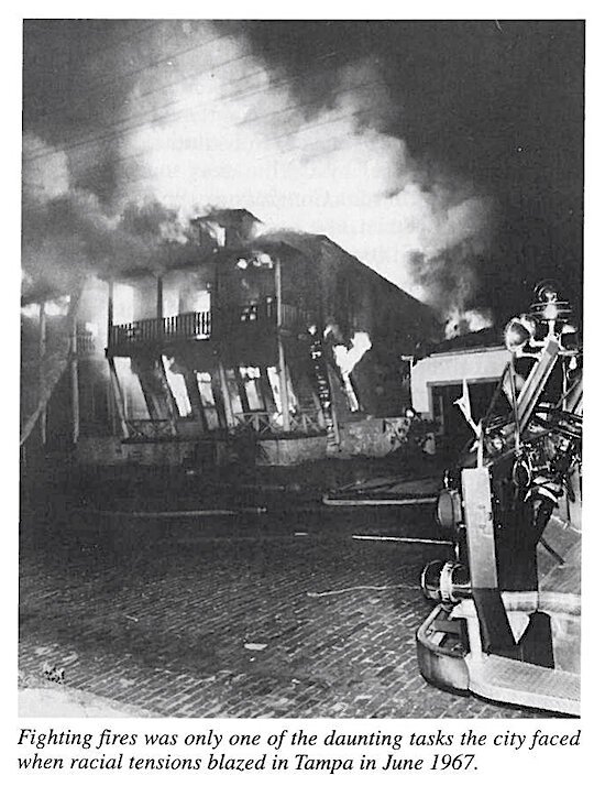 Riots rocked Tampa in 1967; burning buildings along Central Avenue.