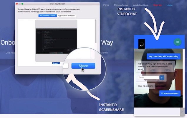 ThinkRTC’s service can be up and running after copying and pasting a line of code into a company’s website. It doesn’t matter what type of computer, browser or software is in use, he says.