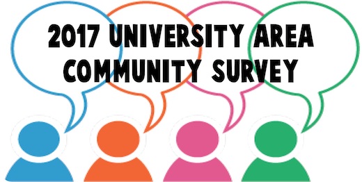 The 2017 University Area Community Survey is confidential and does not require names, emails or phone numbers. However, those who complete the survey and supply their names and contact information can participate in a drawing for prizes, including a TV, park tickets, movie passes, bicycles, a $100 gift card, and more. Additional prizes are available when the survey is turned in personally.