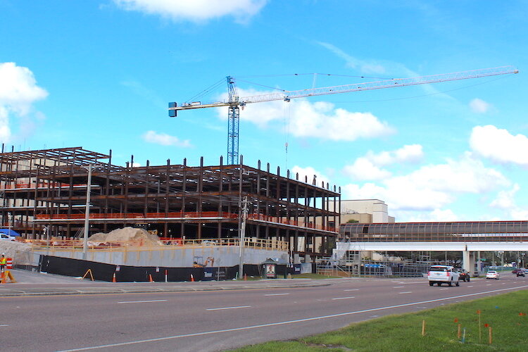 Just southwest of the new AdventHealth tower is a rising bed tower at the James A. Haley Veterans’ Hospital. The new five-story facility will have 96 medical-surgical single-patient rooms along with 40 ICU beds. It is slated to open in 2022. Meanwhile, the Haley VA hospital team is in the process of decompressing some formerly four-patient bedrooms to more luxuriously accommodate two patients, and a new 13,800-square-foot wound care center will be opening in 2020.