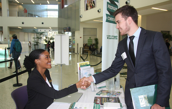 A national recruitment manager for CareerStaff Unlimited, an Irving, TX-based healthcare staffing company, signed up for the job fair through a Career Center Management System called Handshake. That was before Danny Murray, the area manager and a USF alumni, found out about it. “I’m happy that she did her job,” he says. “She beat me to it.”