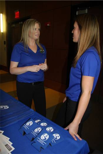 In the Mezzanine Brianna Daly, College Recruiting and Diversity Staffing Coordinator for Florida Virtual School, was looking for information tech interns and computer science and Chinese instructors. “I do prefer to be in the main room. It’s a little bit busier,” she says.