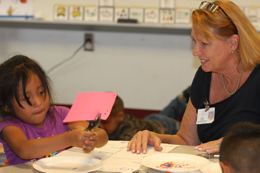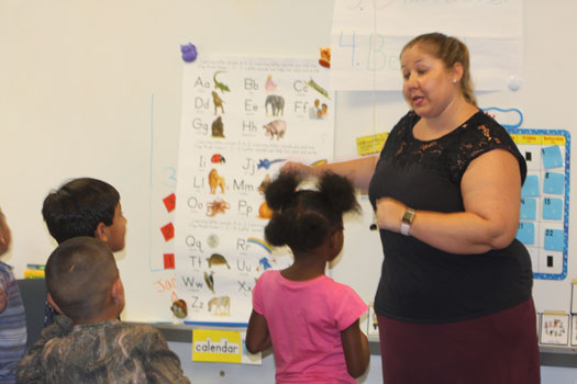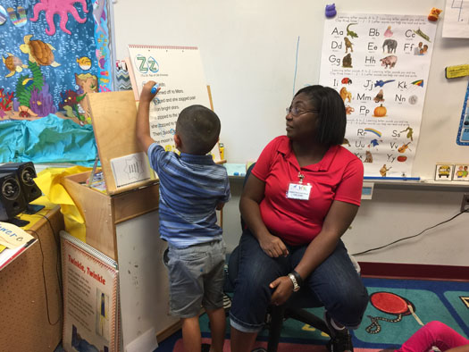 Photo by Cheryl Rogers – Kindergarten supervisor Lisa Black works with a VPK student.