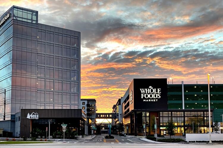 Midtown Tampa is a stunning example of an established mixed-use development. It’s a walkable mini-downtown at the intersection of Dale Mabry and Cypress, with offices, apartment buildings, hotels, a Whole Foods store, a small park, and a variety of ground-floor shops, including Sephora, Squeeze Massage, Casper mattress store, MyEyeDr, REI Tampa, William Dean Chocolates and Ben & Jerry’s ice cream. Restaurants include Ponte Modern American, BellaBrava, True Food Kitchen, Walk-Ons Sports Bistreaux, and Colony Grill.