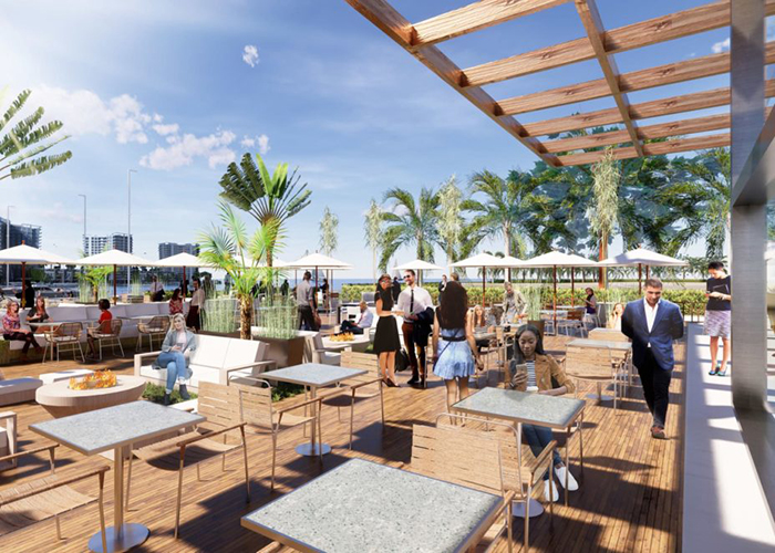 Next, retail will enter the mix. There is a total of 70,000 square feet of retail space planned, including Marina Landings, a town square in excess of 22,000 square feet that will feature coffee shops, wine bars, spas and more. BTI Partners says a waterfront restaurant space has leased, with an announcement expected mid-year. The first tenants in the town center should be announced this month.