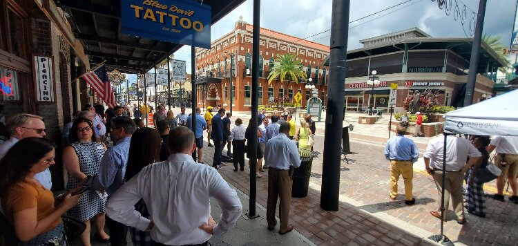Michael Murphy – A nice-sized crowd seeks out some shade during the City of Tampa’s August 20th bricklaying ceremony and ribbon-cutting to celebrate the finish of the first phase of a project returning Ybor City’s East Seventh Avenue to a brick road.