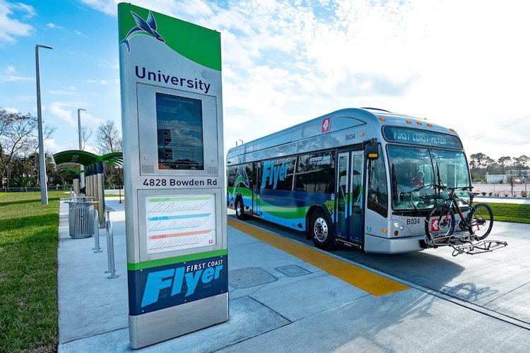 Jacksonville’s First Coast Flyer encompasses over 44 miles of BRT routes, with 13 additional miles planned for southwest of downtown Jacksonville. It operates every 10 to 15 minutes with station amenities such as offboard-fare collection, real-time bus arrival information, and complimentary Wi-Fi onboard.