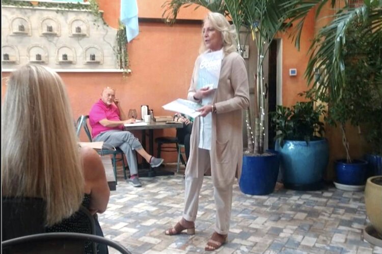 Courtesy of Ocean Allies – Ocean Allies founder and chairman Sheri Heilman making a presentation.