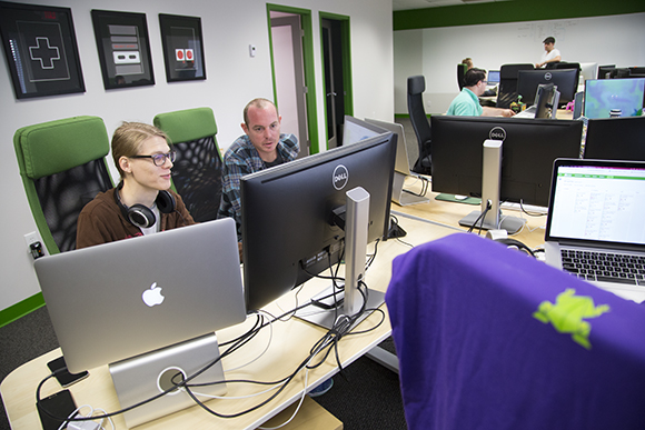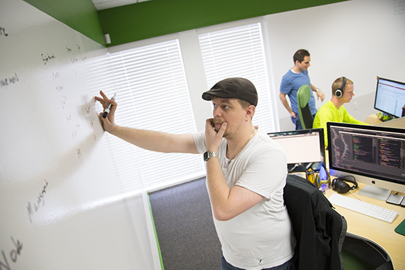 Sourcetoad Development Studio isn’t your ordinary business. You can tell that when you walk in the door. The walls are striped with glossy, dry-erase whiteboard paint. Colorful meeting rooms facilitate creative discussions. A treadmill in the break room enables employees to keep in shape while mulling over a computer problem. And if you want a brew, well, that’s in the fridge.