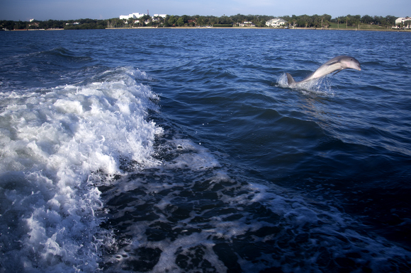 Bring on the Captain. Capt. Jeff Gearhart sets sail for the 3-hour tour to the tune of Gilligan’s Island, drifting down the Intracoastal where spoil islands serve as oases to boaters at play. Cruising toward Clearwater, a tour of celebrity homes develops as Captain Jeff points out palatial estates that have served as home to the likes of Kirstie Alley, John Travolta, and Hulk Hogan, but the true stars in this neighborhood are dolphins. From time to time, the marine mammals make an appearance, riding the wake and making acrobatic flips as they dance in the frothy waves.