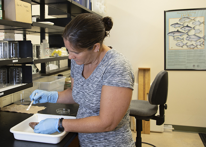 The bigger picture is about sustainability. Her research can help give clues about the health of our oceans and the impact that environmental challenges like pollution, red tide, climate change, and over-fishing can have on marine life.