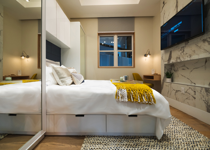 Hunters Point homes will start at $400,000 and are pre-furnished in four interior design schemes that range from modern to nautical. Each design centers eco-sustainability and space efficiency, because Gobuty says he doesn’t want to build McMansions — nor does he believe today’s homebuyer wants them.