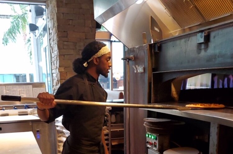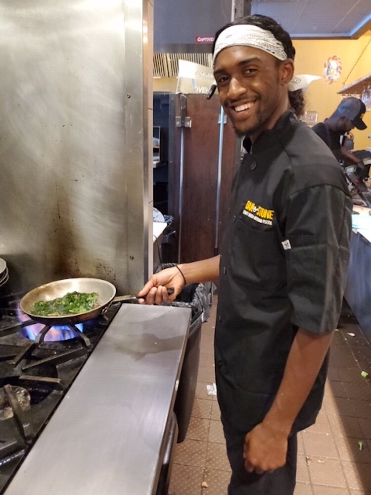 Courtesy of Lavante Pope – Scholarship winner Lavante Pope putting his skills to work at Oak and Stone in St. Petersburg.