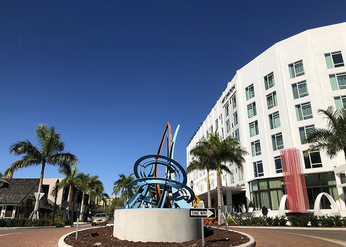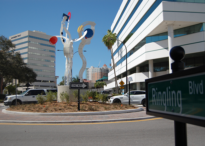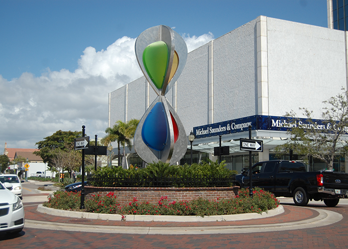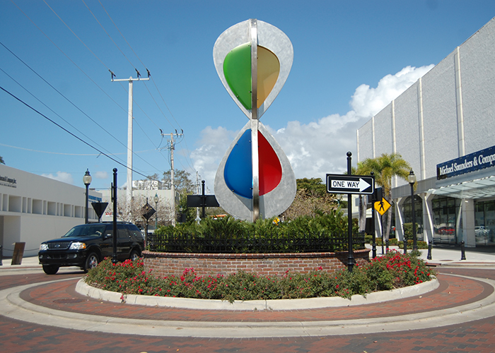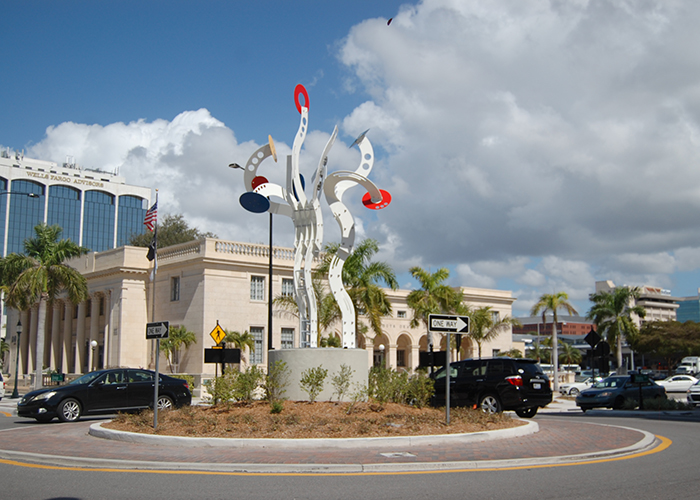Roundabouts recently installed at Orange Avenue and Main Street, Ringling Boulevard, and Palm Avenue, and at the intersection of Palm and Cocoanut avenues are accompanied by colorful sculptures. The City Public Art Fund for such projects is maintained by financial contributions from private developers.