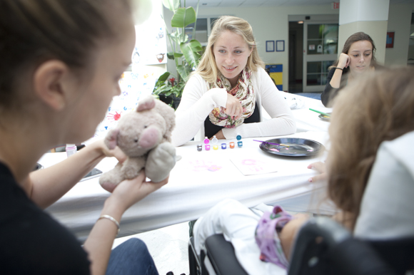 “Art is a way for young children to visually express themselves when they don’t have the vocabulary to do so,” says Spooner. “We can work on many goals; it can be pain management or just coping with the social changes that illness brings.”