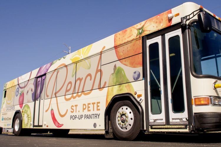 Provided by Reach St. Pete – Nonprofit Reach St. Pete’s Pop-Up Pantry, a donated and converted city bus, has been a part of hurricane supply distribution efforts.