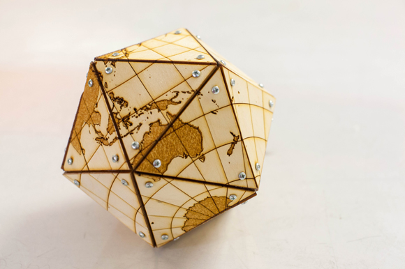 by Amber Sigman – An Icosahedron with 20 sides made by Bryan Lee using equipment at Hackerspace, a ‘Gym for Nerds’. (2017)